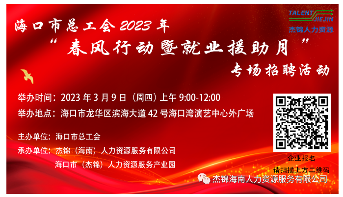 6月24日上午9時-12時,由海口市龍華區(qū)人力資源和社會保障局、海口市(龍華)人力資源服務產業(yè)園主辦,杰...